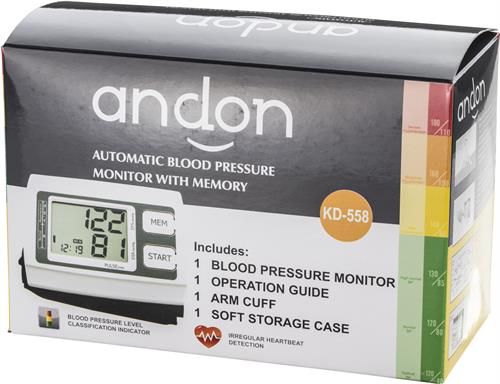 Andon Health KD-558 - Automatisk blodtrycksmonitor med blodtrycksmanschett, vit/svart