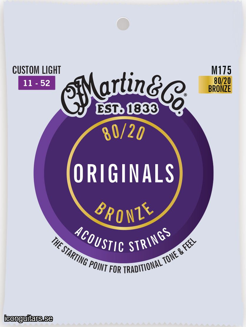 Martin Originals akustiska gitarrsträngar är designade för gitarrister som letar efter en traditionell ton och känsla. I generationer har Martin satt standarden för akustisk gitarrton och precisionstillverkning. Dessa värden återspeglas i strängarnas design och tillverkningsprocessen. Det är därför Martin gör sina egna. Storlekar: M170 Extraljus 10-14-23-30-39-47 M140 Ljus 12-16-25-32-42-54 M175 Custom Light 11-15-23-32-42-52 M150 Medium 13-17-26-35-45-56